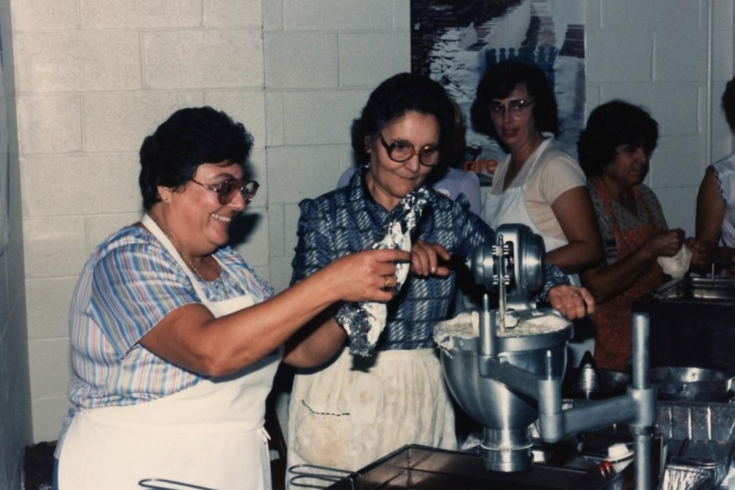 The stories about Christine Samaras as Chairwoman were legend as she was a no nonsense disciplined woman who knew how to make a profit. According to Angela Nikiforou, to be sure no one tried to sneak in extra ingredients and portions, Christine measured every portion and knew exactly how many of the Greek cookies, koulourakia, were in each batch. Angela recalls the story that one time, as Christine was counting the batch, she noticed it was four cookies short! Bessie and Mary Samaras were present when Christine called for everyone to stop and listen to her give a lecture that the volunteers had to use the exact measurements or the production would be short. Finally, Angela stepped up and said she had sampled the missing cookies. Under Christine’s rules, all the volunteers paid for what they ate at these festivals. These events required Christine’s discipline as the Greeks were sometimes not good at taking orders and liked to give customers more than the exact portion Christine demanded. One vendor who had shorted an order of Greek cheese got a stern lecture from Christine telling the supplier, “Don’t you know it is a sin to steal from the church.”