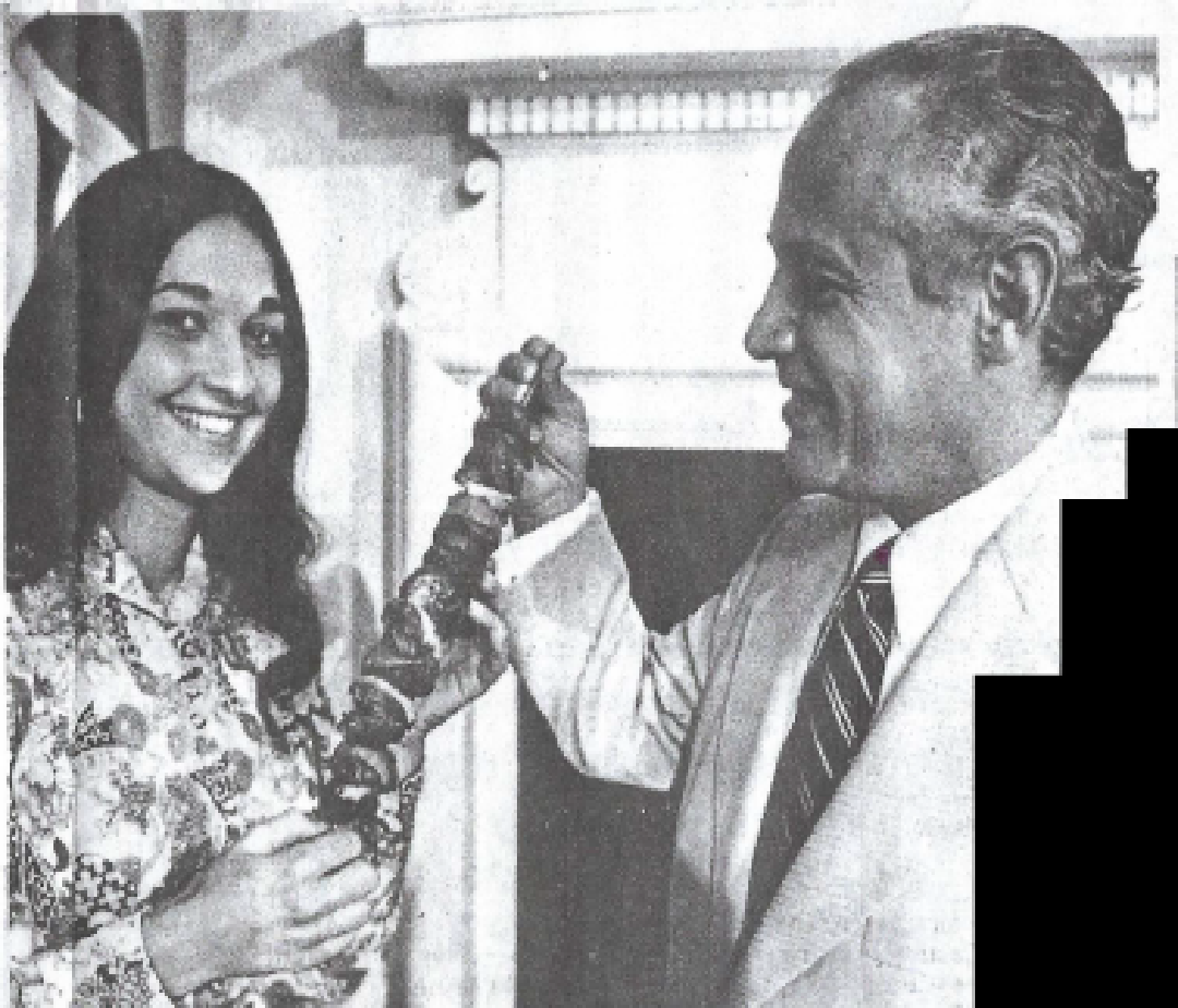 Festival ’72 Opens with 80 Big Exhibits. GIFT ‘FOR THE GOVERNOR – Gloria Fekas presents a specially prepared Greek Souvlaki (shish kebab) to Governor Marvin Mandel, who is honorary chairman of the International Festival ’72. the festival opens tomorrow at Sandy Point State Park and runs through Sunday.